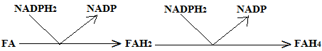 These reactions are catalyzed by the enzyme FA-reductase; ascorbic acid appears to be essential for the reduction of FA to FAH4